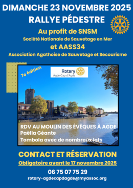 Le 23 Nov. 2025 Lire plus Rallye pédestre Participez au rallye pédestre du Rotary d'Agde et... 08:30 Moulin des Evêques