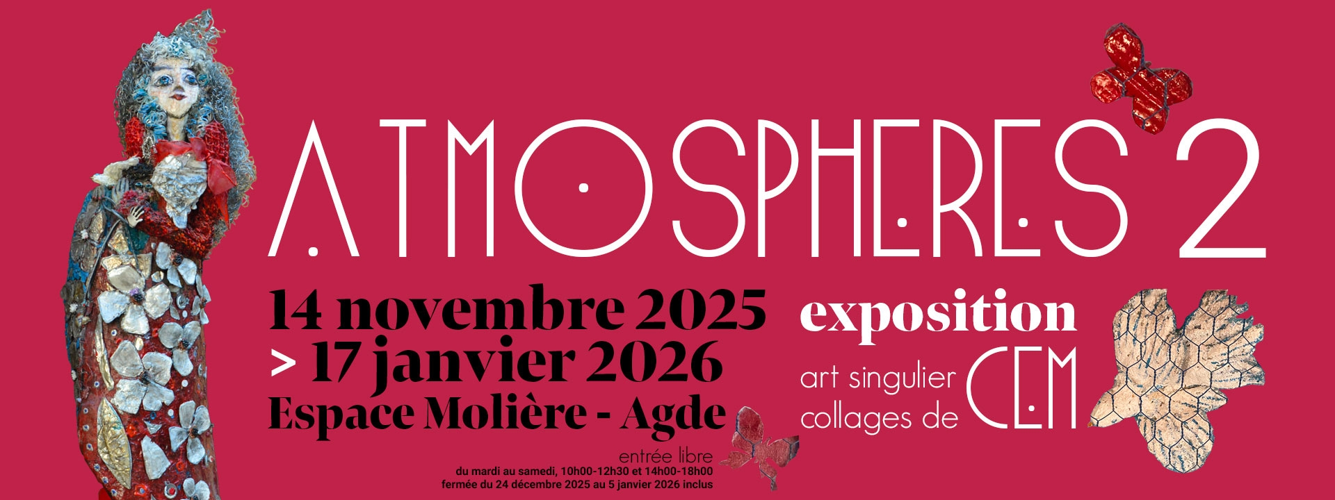 Le 13 Nov. 2025 Lire plus Vernissage de l'exposition "Atmosphères 2" Tableaux et sculptures paréidolie et surcyclage de CEM “Petite, j’adorais... 18:30 Espace Molière