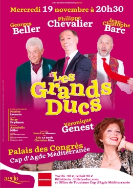 Le 19 Nov. 2025 Lire plus Théâtre : Les Grands Ducs Trois acteurs sur la touche entreprennent une tournée théâtrale pleine d'imprévus... 20:30 Palais des Congrès Cap d'Agde Méditerranée,
