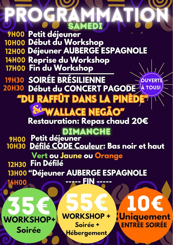 - Ateliers + soirée brésilienne : 35 €