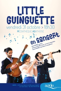 Le 31 Oct. 2025 Lire plus CONCERT “LITTLE GINGUETTE” avec Audrey Leclair, chant, cornet, claquettes, David Tavani, clarinette, saxophone et Abel Pamiès,... 18:30 MÉDIATHÈQUE AGATHOISE