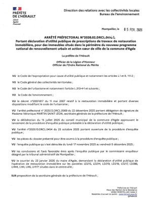 Arrêté préfectoral n°2026.02.DRCL.0062 du 05 février 2026 portant déclaration d'utilité publique de prescription de travaux de restauration immobilière