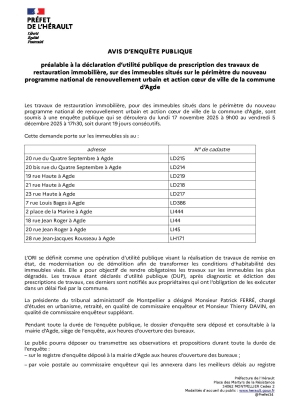 Avis d'enquête publique préalable à la déclaration d'utilité publique de prescriptions de travaux de restauration immobilière